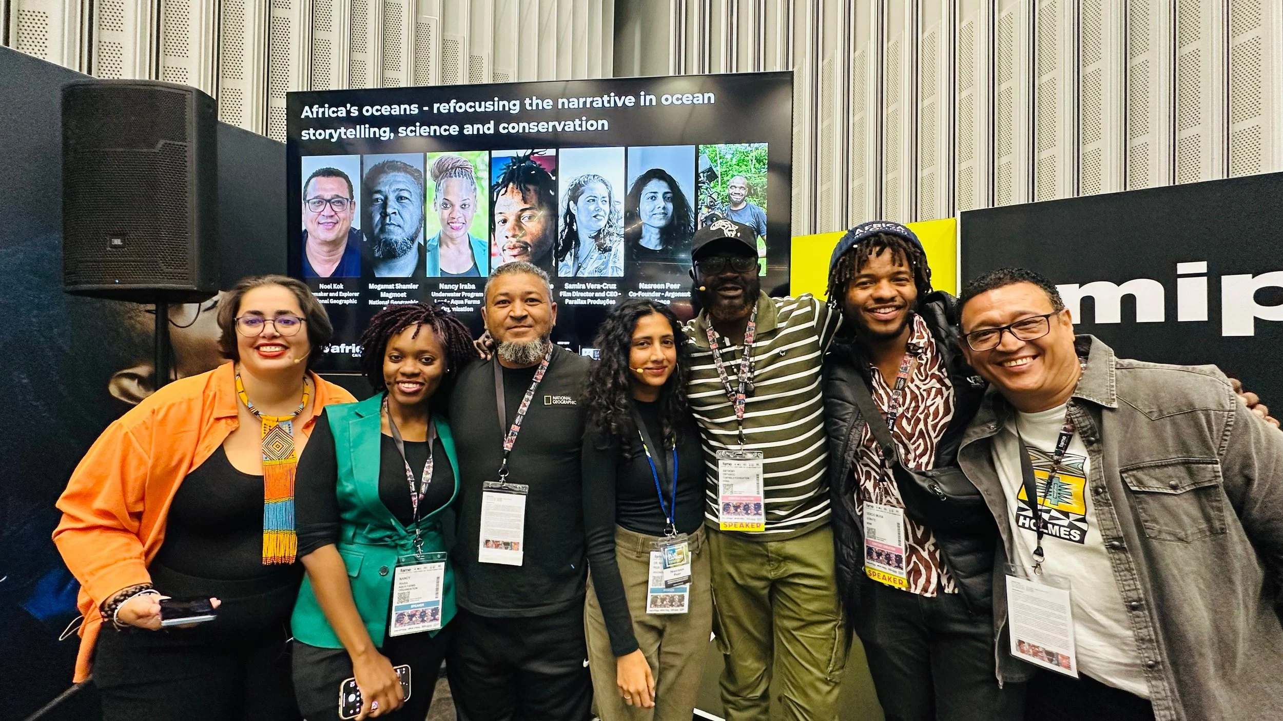 Day three saw us grab our gear and abandon our booth to engage with audiences in two sessions. The first at the MIP Theatre space explored the power of visual storytelling for ocean impact where Noel Kok (Co-Founder and Executive Director of NEWF and National Geographic Explorer) opened the stage for Mogamat Shamier Magmoet (Underwater Photographer & Cinematographer, Co-Founder of #SeaTheBiggerPicture Ocean Initiative and National Geographic Explorer - South Africa), Anthony Ochieng Onyango (Conservation Photographer & Filmmaker - Kenya), Dr.Nasreen Peer (Marine Scientist and Co-Founder of Argonaut Science - South Africa), Dercio Muha Gomate (Musician, Composer, Photographer and National Geographic Explorer), Nancy Iraba (Marine Scientist, Underwater Programs Lead, Aqua-Farms Organisation and National Geographic Explorer - Tanzania) and Samira Vera-Cruz (Director and Filmmaker - Cabo Verde) to share how their relationship with and access to the ocean has influenced and shaped their careers and stories.