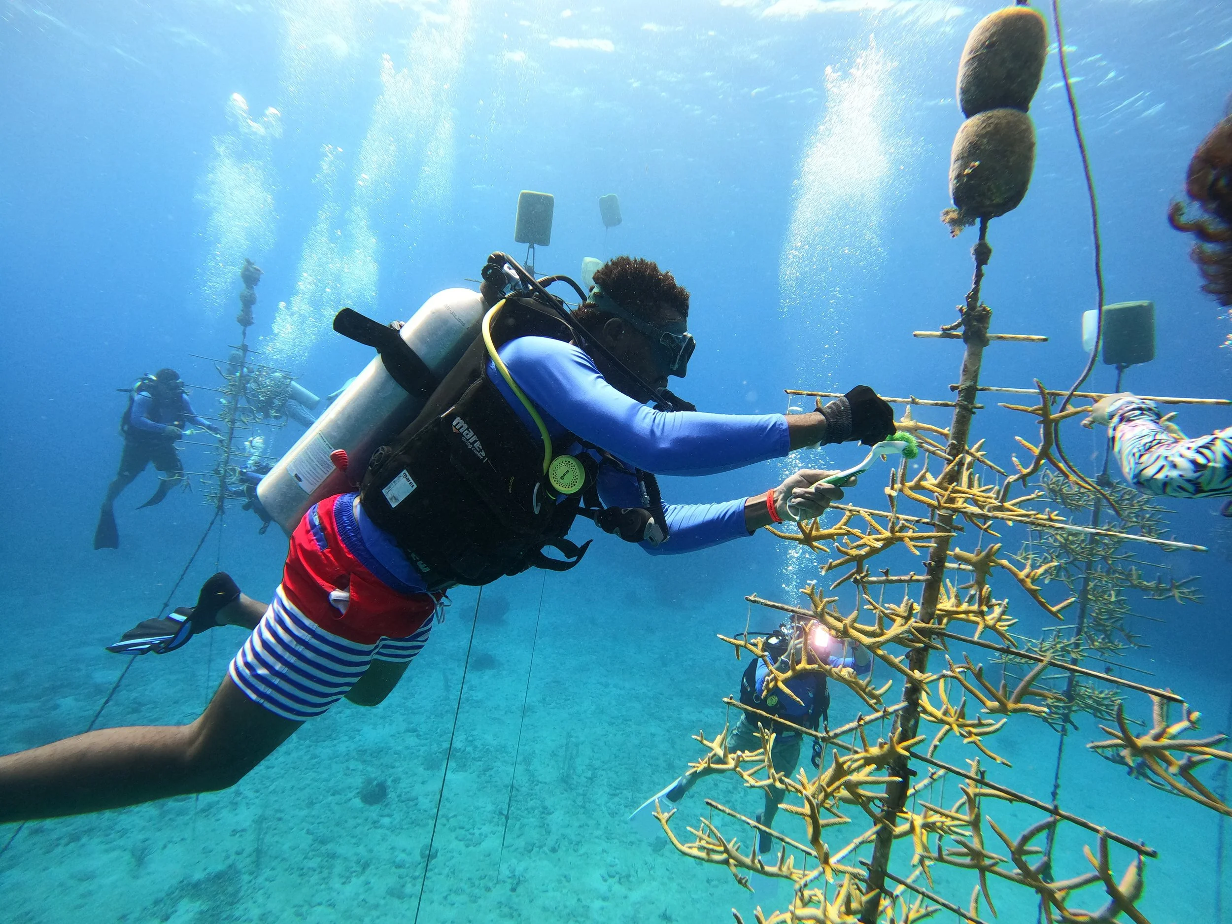 His milestones and growth are marked along a steady series of 475 dives scattered across kilometres of thriving, coral encrusted reefs — and a handful of dives logged off the shores of Honduras where he was invited to join DWP Cares to immerse in coral gardening and learn about DWP’s programs.