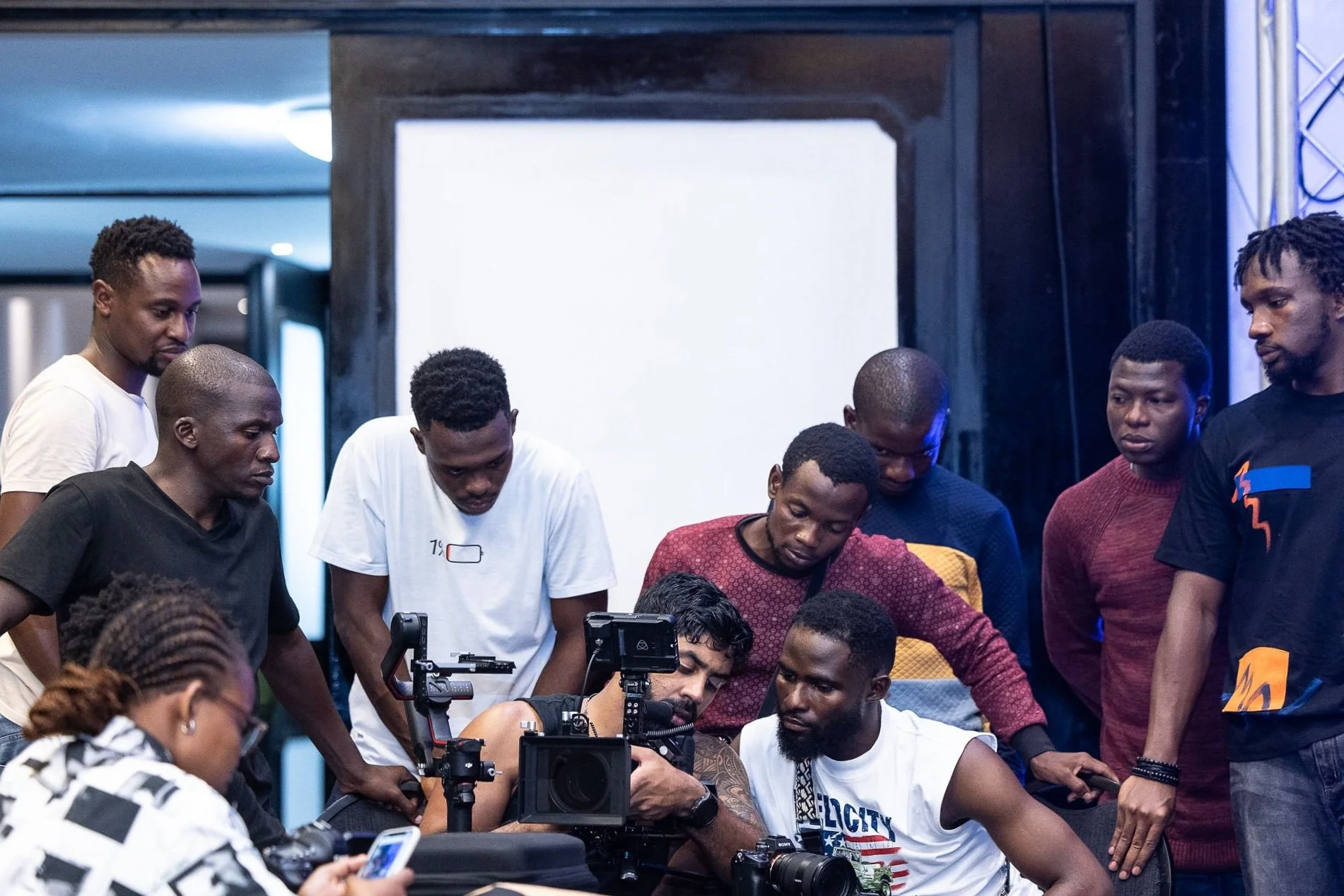 A group of videographers and photographers in a technical demonstration led by Gino Naidoo (Videographer and Digital Creator). Photo by Anthony Ochieng for NEWF.